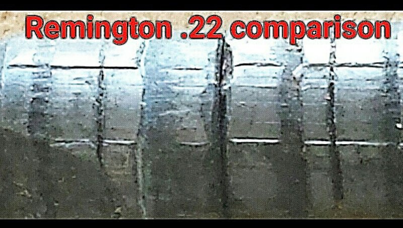 Photo comparison of Remington .22 caliber bullets showing 4 and 6 lands and grooves